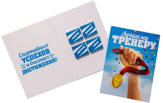 Шоко открытка- Лучшему тренеру. Спортивных успехов и высоких достижений!